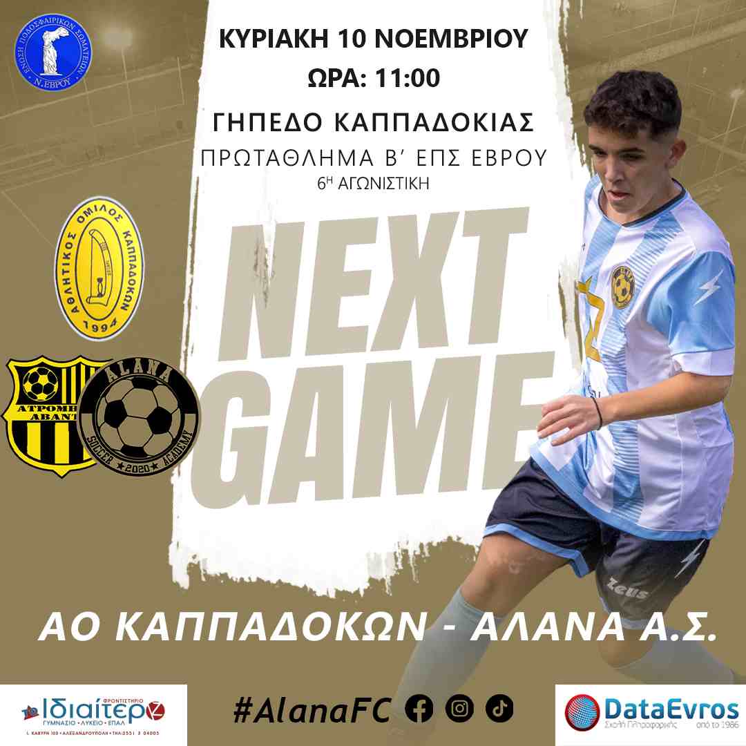 Κυριακή 10/11: ΑΟ Καππαδοκών – ΑΛΑΝΑ Α.Σ.